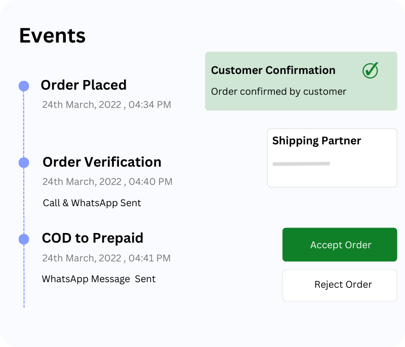 Verify COD orders by leveraging various channels like WhatsApp, SMS, and COD confirmation calls through IVR. Make the communication more personalized and enhance customer experience.